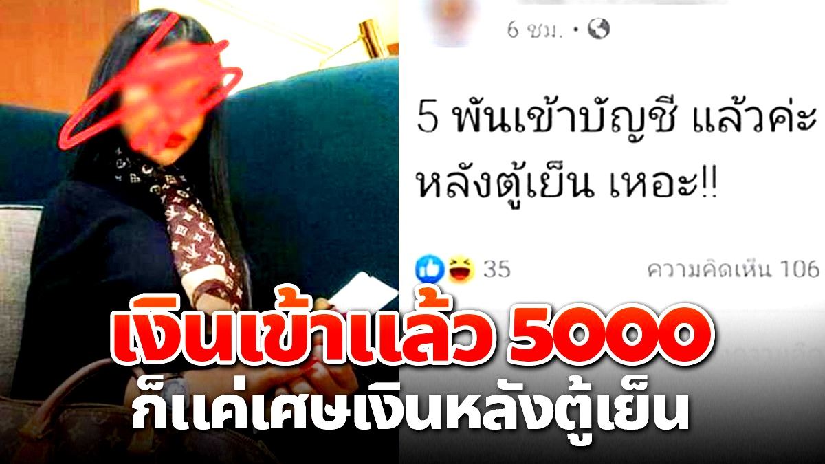 แต่ล่าสุดกลับมีประเด็นสุดดราม่าในโลกออนไลน์ หลังจากมีหญิงสาวผู้ใช้เฟสบุ๊ครายหนึ่งได้โพสต์ข้อความระบุว่า 5 พันเข้าบัญชีแล้วค่ะ ก็แค่เศษเงินหลังตู้เย็น เหอะ